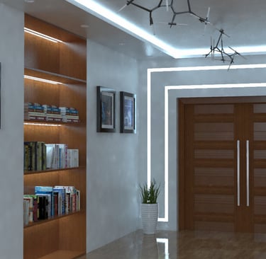 A Camada de Destaque (Accent): É a "luz do drama", usada para valorizar a arquitetura ou um objeto especial. É aquele spot direcionado para um quadro que você ama, para uma parede com uma textura interessante ou para uma planta escultural.
